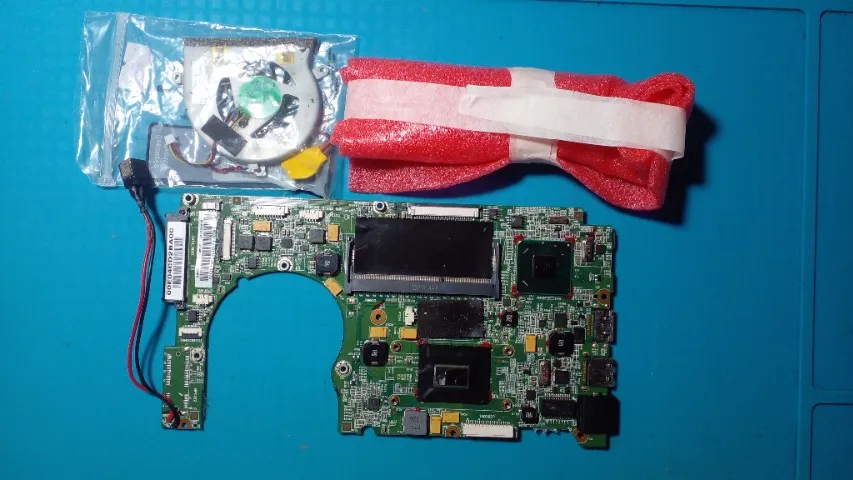 Placa-mãe de notebook CCE Win com cooler e outras peças para reposição. Ideal para técnicos e entusiastas. Peças eletrônicas para PC. Retiradas de equipamento funcional" (usadas).