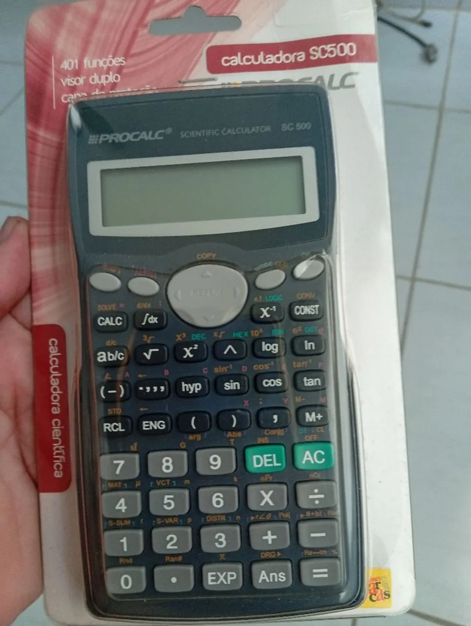 Calculadora científica PROCALC SC500 com 401 funções e visor duplo. Ideal para estudantes e profissionais que buscam precisão e praticidade em cálculos.