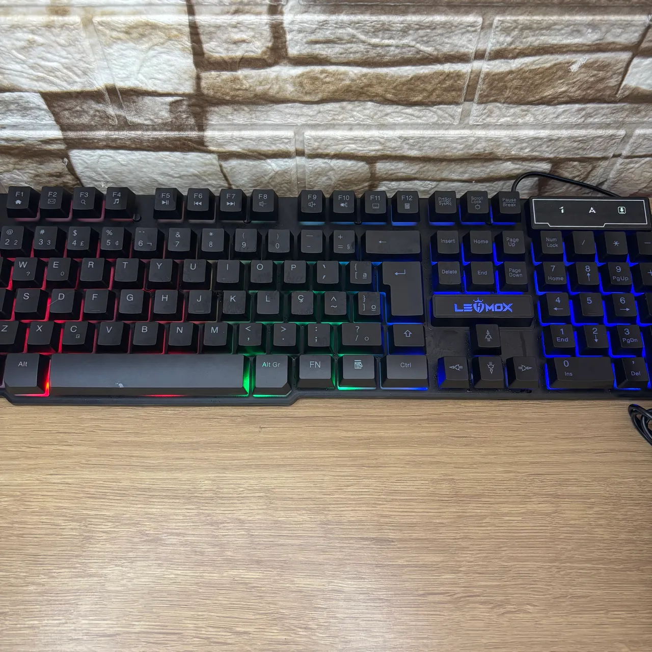 Teclado gamer com luzes RGB.