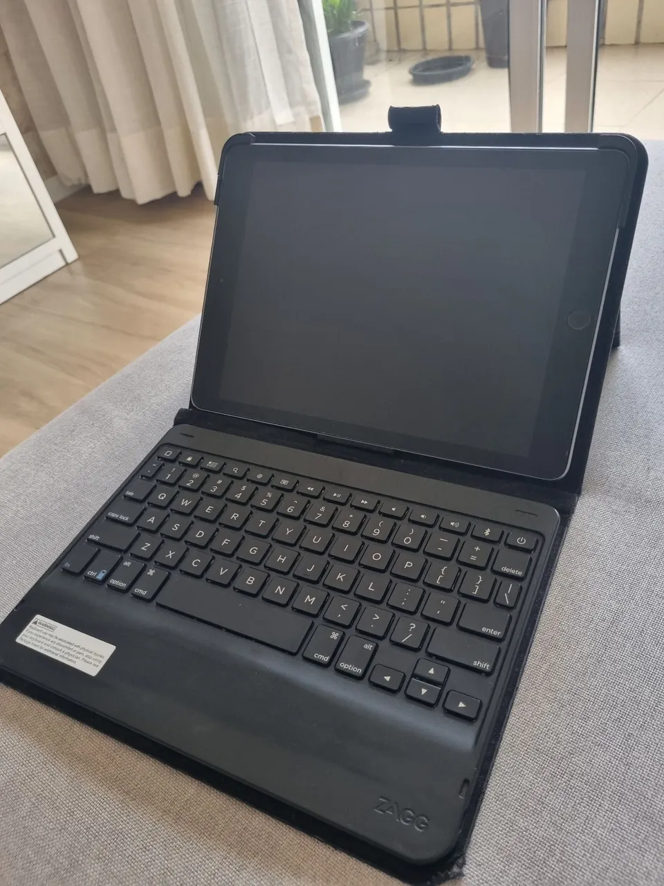 iPad de 6ª Geração, perfeito para suas tarefas diárias e entretenimento. Leve e com tela vibrante, ideal para estudos, trabalho e lazer. Desfrute da combinação de desempenho e portabilidade. 32Gb. Com capa protetora e teclado acoplado.