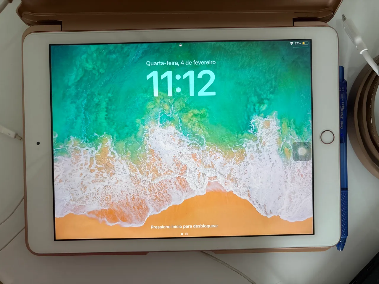 iPad 6ª geração com tela de alta resolução e design elegante. Perfeito para navegar na internet, assistir vídeos, jogar e muito mais. Acompanha caneta para iPad, ideal para anotações e desenhos e capa com teclado