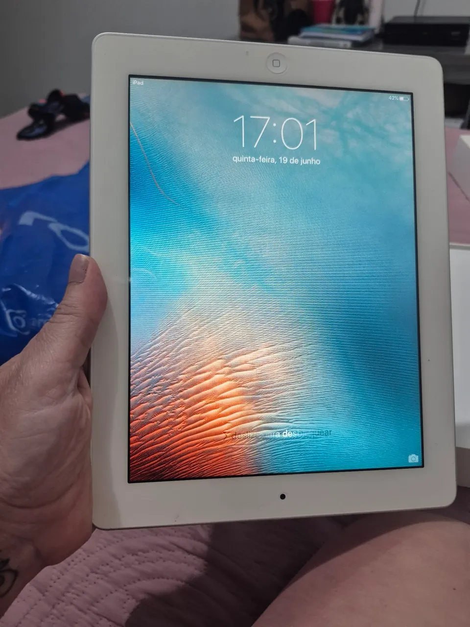 iPad Apple, tela grande, ideal para assistir vídeos, jogar e navegar na internet. Leve e prático para usar.