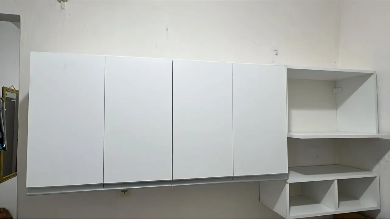 Armário aéreo branco, perfeito para otimizar o espaço da sua cozinha ou área de serviço. Design moderno e funcional, ideal para organizar seus utensílios e mantimentos.