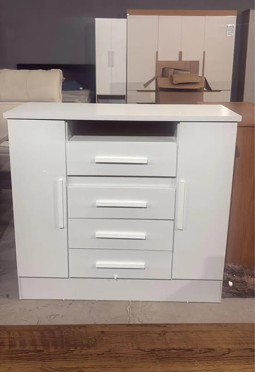 Linda cômoda branca, ideal para organizar seus pertences com estilo e praticidade. Design moderno e funcional, perfeita para complementar qualquer ambiente.
