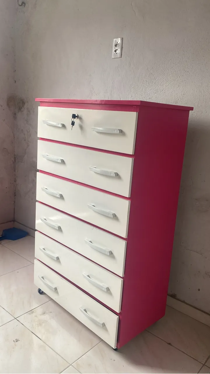 6 gavetas sendo uma com chave. Cor branco com rosa. *NUNCA USADA* Aceito cartões com taxa da maquineta.