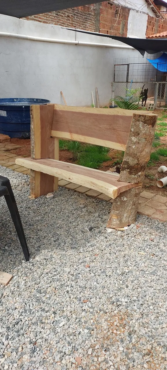 Banco de madeira rústico, ideal para áreas externas. Feito com madeira de alta qualidade, proporcionando beleza e durabilidade para o seu ambiente.