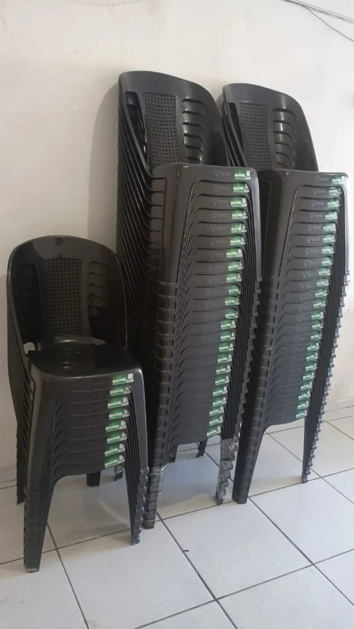cadeiras de plástico preto, FORPLAST ,novas e resistentes que suporta até 154kgs e com selo do Inmetro.. Perfeitas para eventos, restaurantes, escritórios e muito mais! Design moderno e confortável.