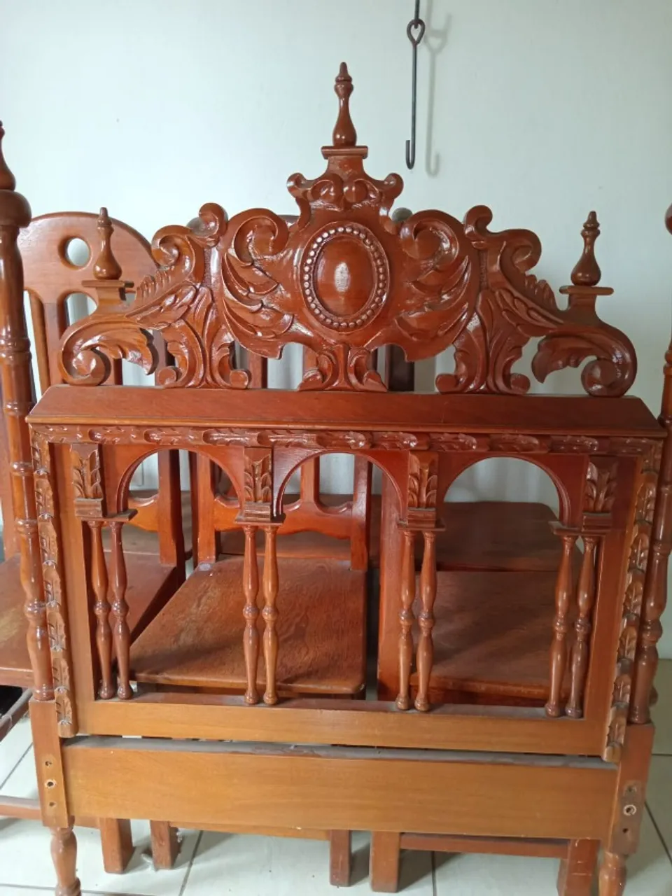 Linda cabeceira para cama de solteiro, entalhada em madeira maciça, com design clássico e elegante. Perfeita para dar um toque de requinte e aconchego ao seu quarto. Detalhes minuciosos e acabamento impecável.