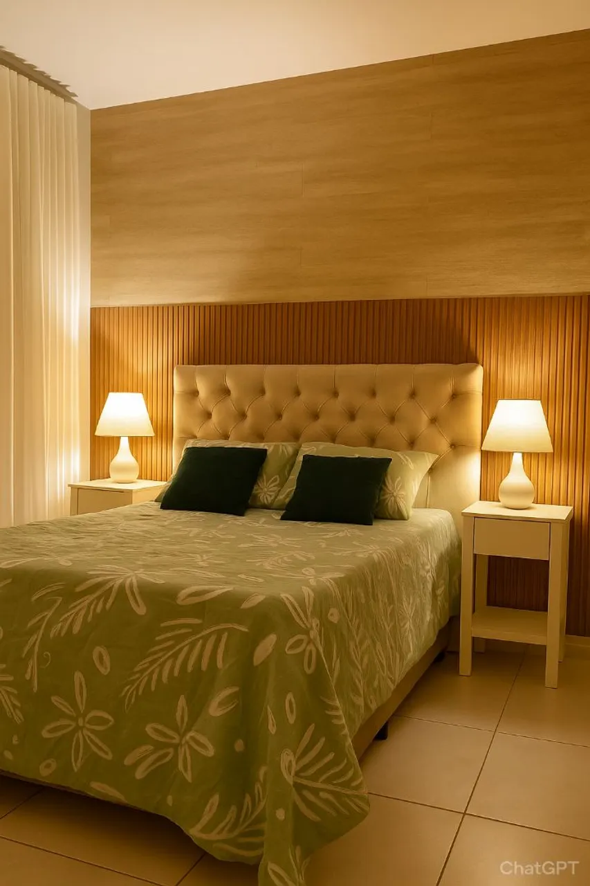 Conforto e elegância para seu quarto. Cama de casal com design sofisticado, cabeceira capitone veludo bege, estofada e detalhes que trazem aconchego ao ambiente. Ideal para noites de sono tranquilas e revigorantes.