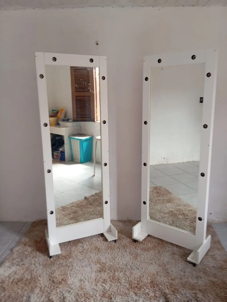 Espelhos de chão com iluminação, design moderno e funcionalidade. Ideal para penteadeiras e maquiagem, com luzes em volta para uma iluminação perfeita.