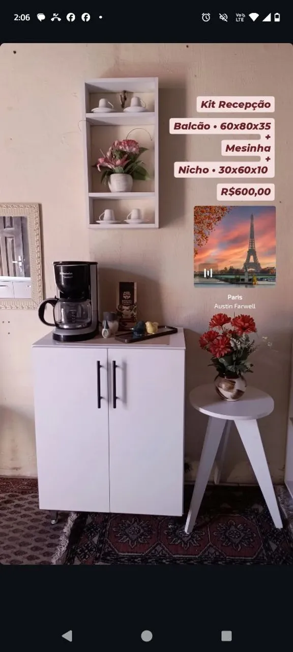 Transforme seu cantinho do café em um ambiente charmoso e funcional com este kit completo! Balcão espaçoso, mesinha elegante e nicho prático, tudo em um só conjunto. Perfeito para quem busca praticidade e estilo em um só lugar.