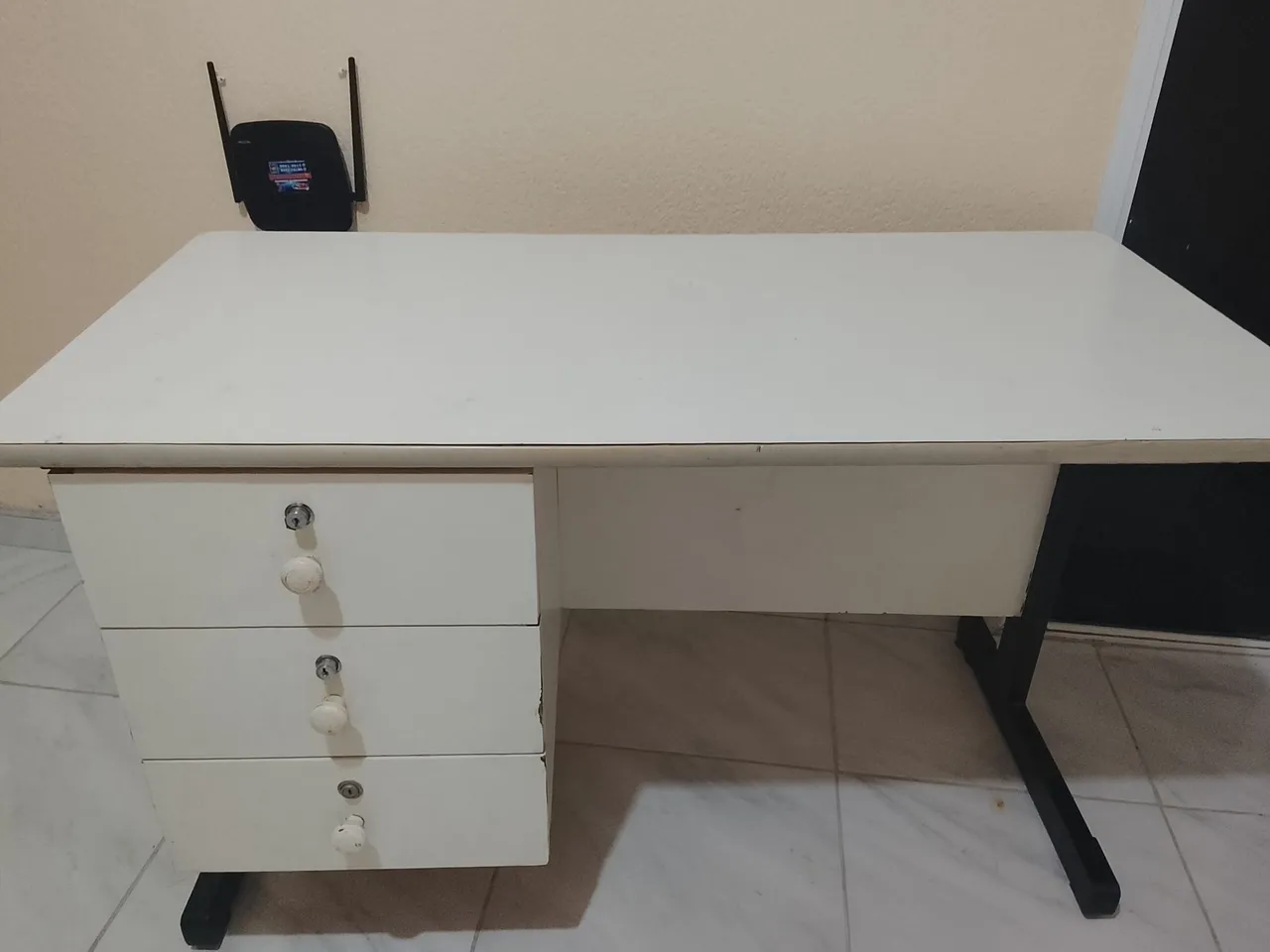 Mesa branca de madeira, ótimo para estudos.