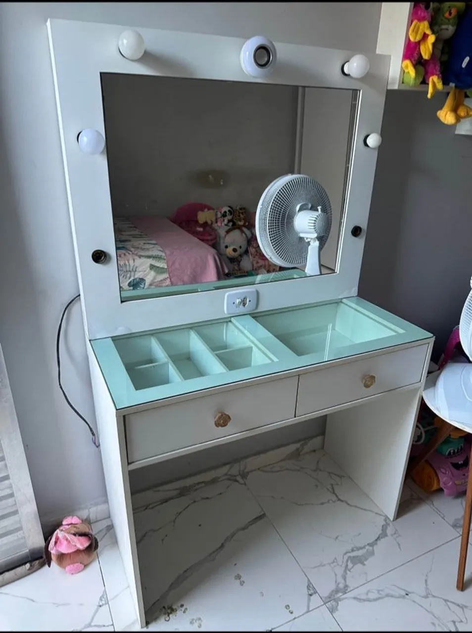 Linda penteadeira com design moderno e elegante. Perfeita para organizar seus cosméticos e itens de beleza. Ideal para criar um espaço charmoso e funcional no seu quarto.