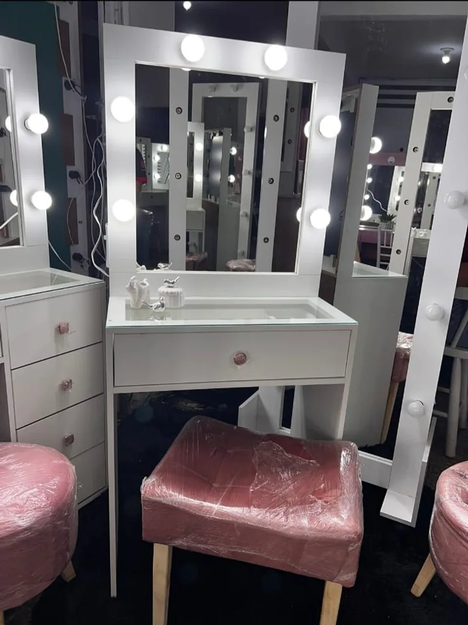 *PENTEADEIRA 1 GAVETA* ?SÓ PENTEADEIRA? 350,00 ? 390,00 até 10x? ?PENTEADEIRA + LÂMPADA ? 400,00 ? 450,00 até 10x ? ?PENTEADEIRA + LÂMPADA + PUFF RETRÔ ? 460,00 ? 500,00 até 10x ? ?PENTEADEIRA + PUFF CAPITONÊ + LÂMPADA 480,00 ? 520,00 até 10x ? ?PENTEADEIRA + LÂMPADA + CADEIRA ? 560,00 ? 610,00 até 10x ? ?PENTEADEIRA + LÂMPADA + PUFF QUADRADO ? 510,00 ? 550,00 até 10x ? ?MEDIDAS? 1.53 cm ALTURA 0.68 cm LARGURA 0.35 cm PROFUNDIDADE