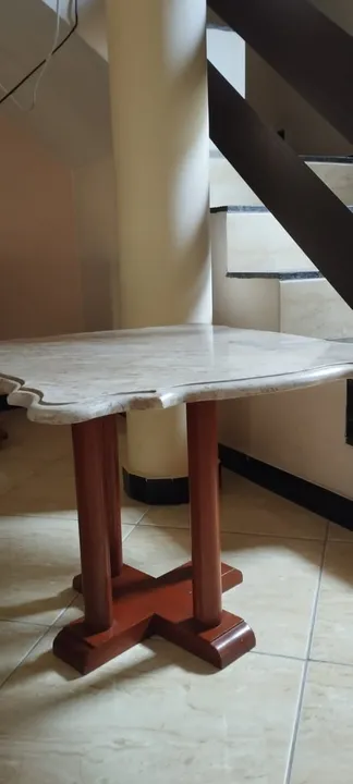 Mesa de centro com pedra de mármore. Muito bem conservada, baixinha. Mede 60 por 70cm. Não faço entrega, retirada somente na minha residência no conjunto polar.