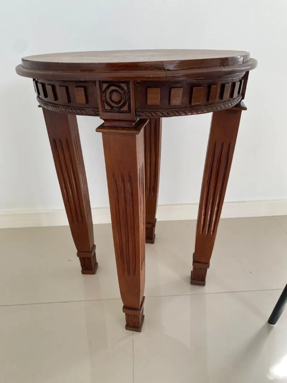 Linda mesa lateral de madeira, perfeita para complementar a sua sala de estar. Design elegante e charmoso, ideal para decorar e otimizar o seu espaço.