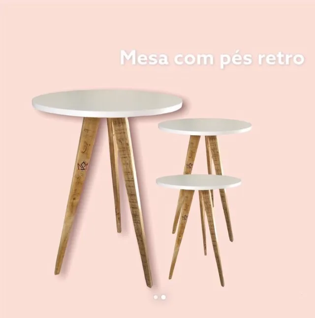 Conjunto de mesas retrô, com design moderno e elegante. Perfeito para complementar a decoração da sua casa, com um toque vintage e charmoso. Ideal para diversos ambientes, oferecendo versatilidade e estilo.
