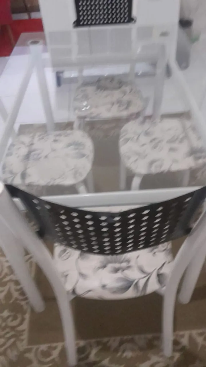 Conjunto de mesa e cadeiras perfeito para sua casa! Design moderno e elegante, ideal para refeições em família ou receber convidados.