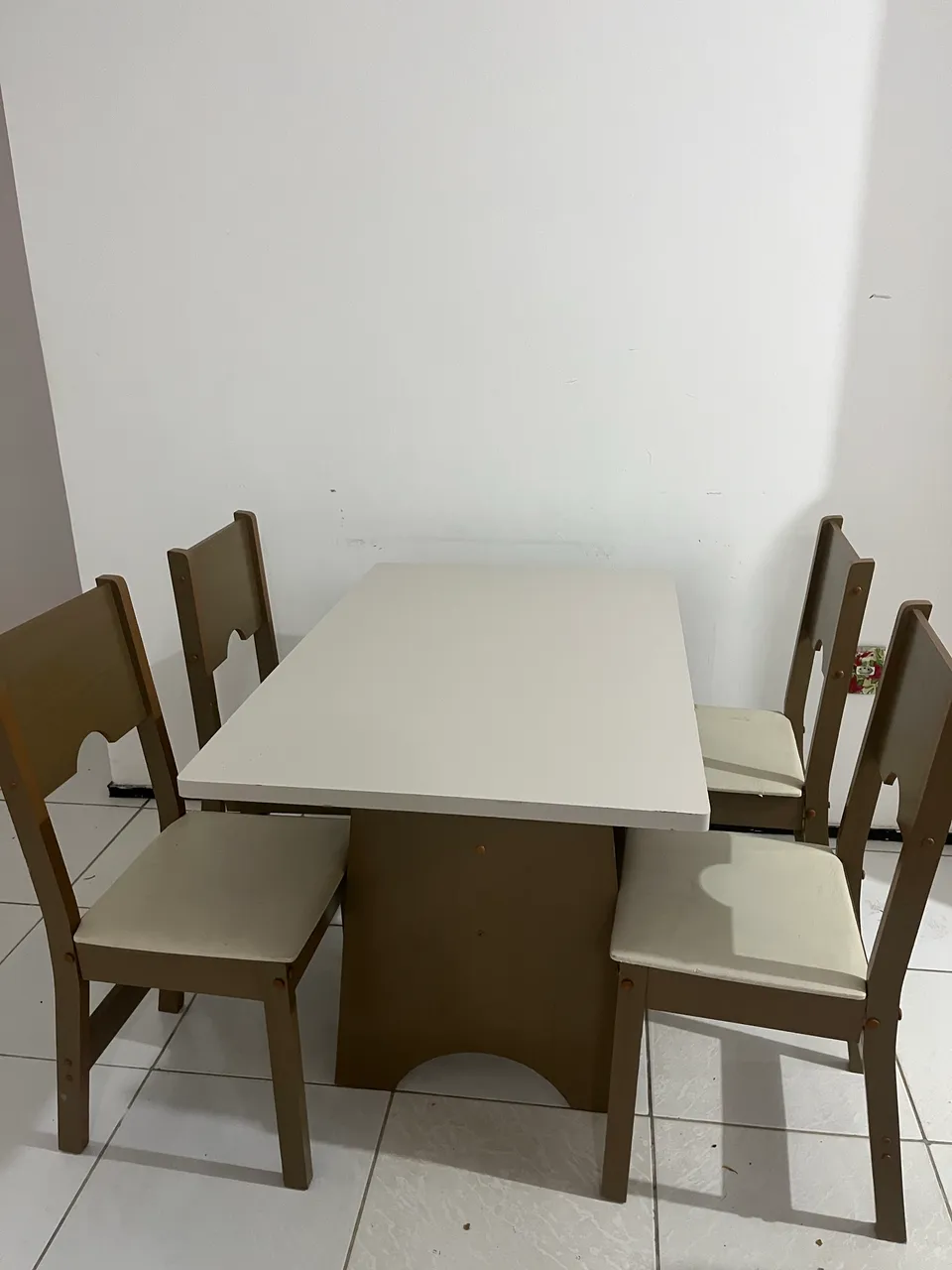 Conjunto de mesa e cadeiras perfeito para sua casa! Design elegante e funcional, ideal para refeições em família ou para criar um cantinho aconchegante. Adicione um toque de charme ao seu ambiente!