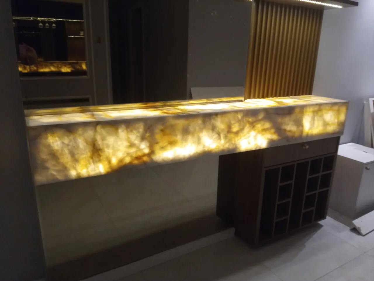 Linda pedra ônix para bancada, com iluminação interna que proporciona um visual sofisticado e elegante. Perfeita para dar um toque especial ao seu ambiente!observaçao estou vendendo só a pedra.