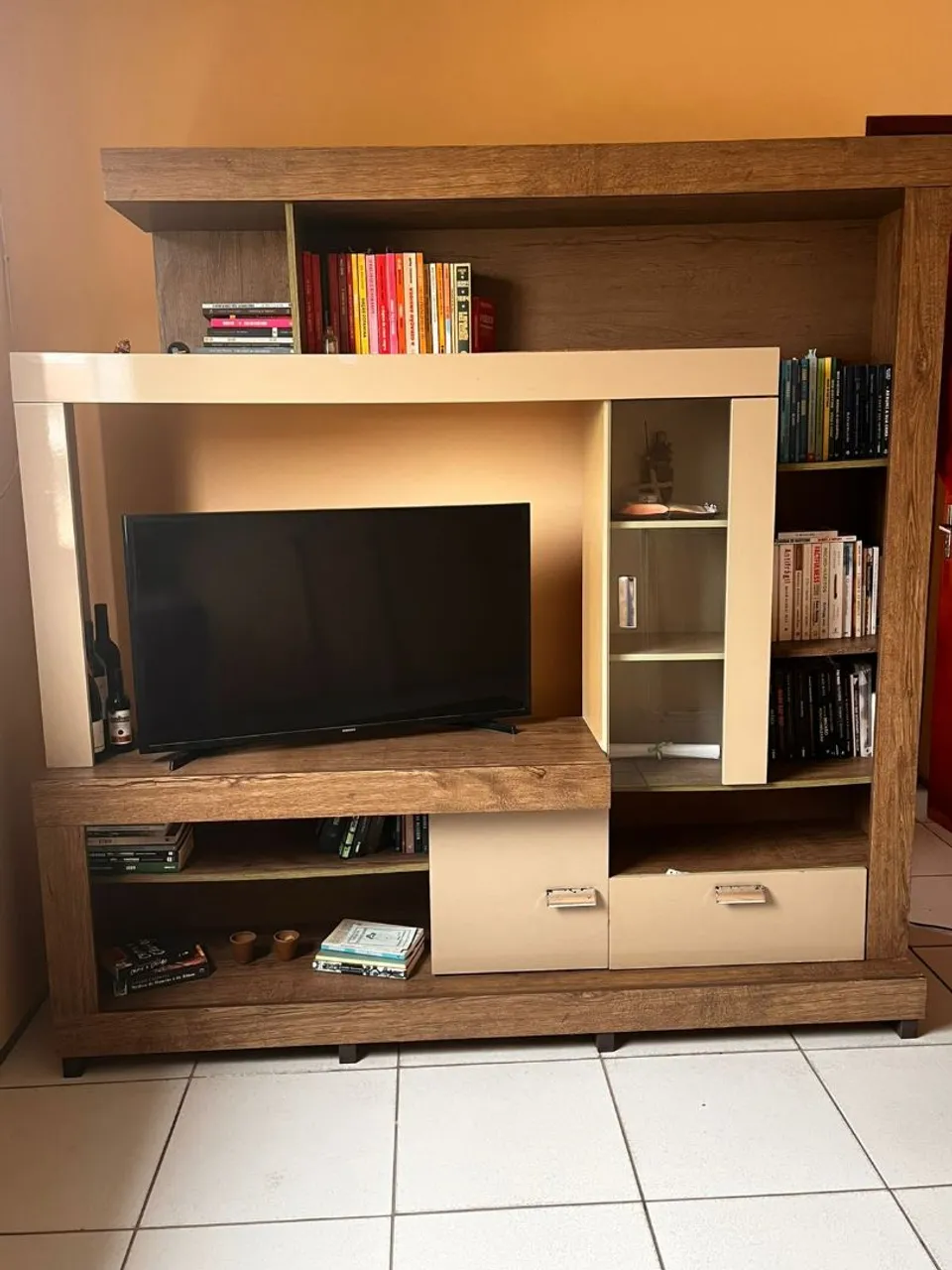 Linda estante para sua sala, com design moderno e funcional. Possui espaço para TV, livros, objetos de decoração e muito mais. Deixe seu ambiente mais elegante e organizado!