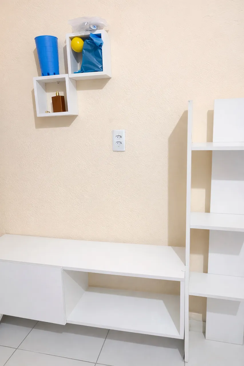 Lindo móvel branco, ideal para sua sala. Design moderno e funcional, perfeito para organizar seus objetos e decorar o ambiente. Aproveite!