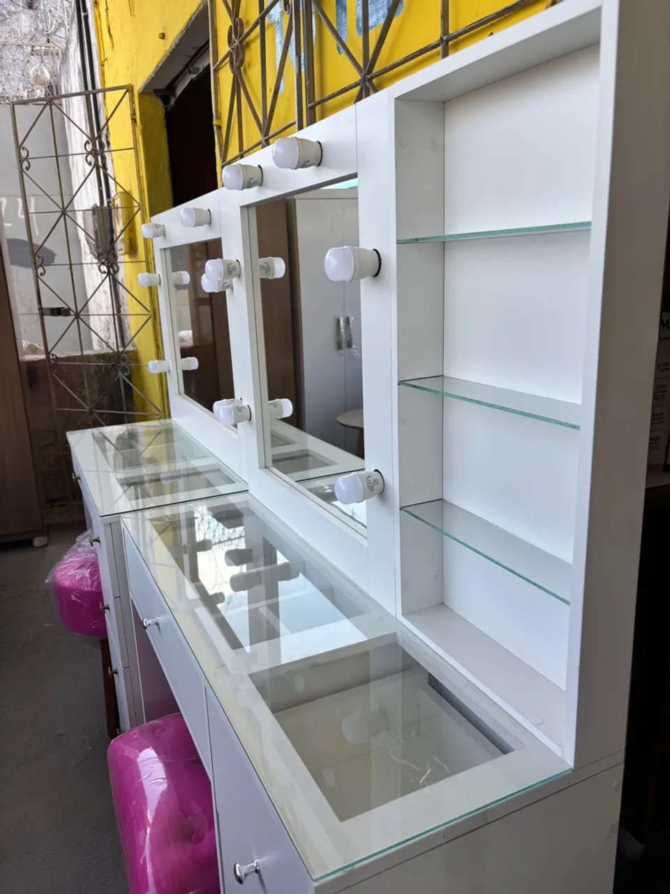 Linda penteadeira camarim com espelho e iluminação embutida. Design moderno e funcional para o seu espaço de beleza.