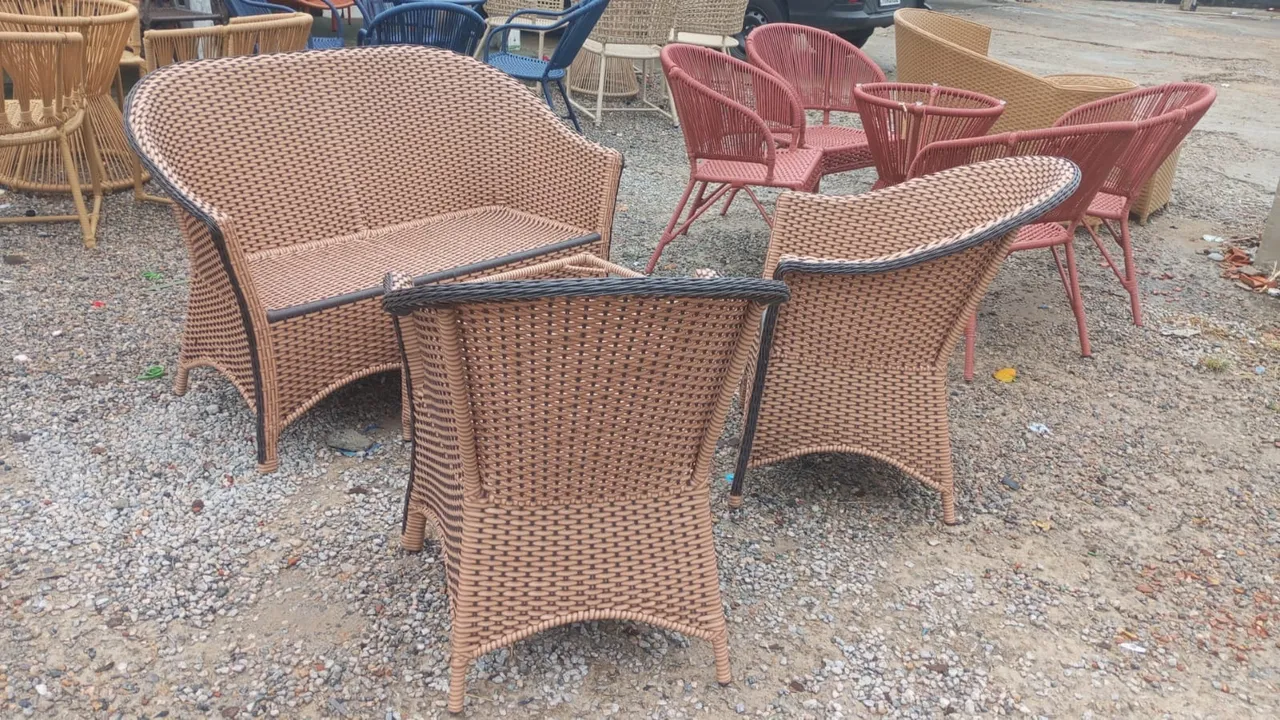 Conjunto perfeito para sua área externa! Sofás e poltronas com design elegante e resistente, ideais para relaxar e receber amigos. Conforto e estilo em um só lugar.