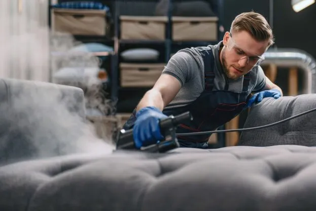 Lavamos' : sofá , cama e tapetes ou bancos de carros e cortinas