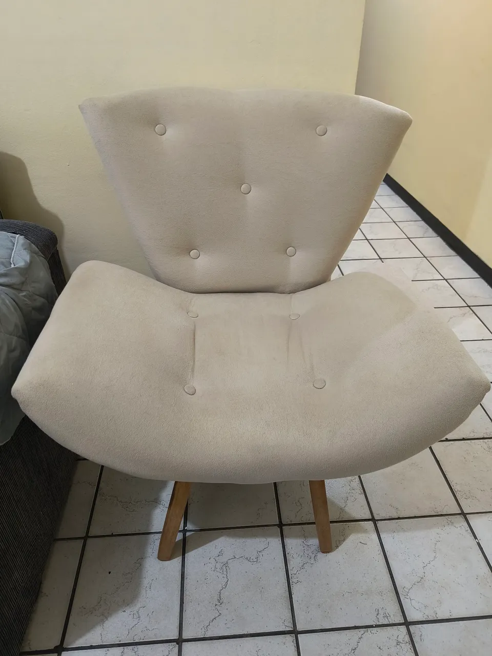 Poltrona de Veludo na cor Creme. Em excelente estado, sem marcas, manchas ou sujeiras.