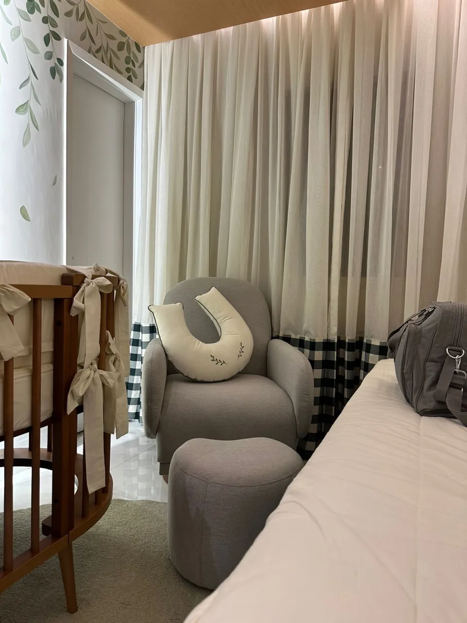 Poltrona com linhas orgânicas, encosto alto, assento confortável e design moderno. Ideal para amamentação + puff para colocar as pernas