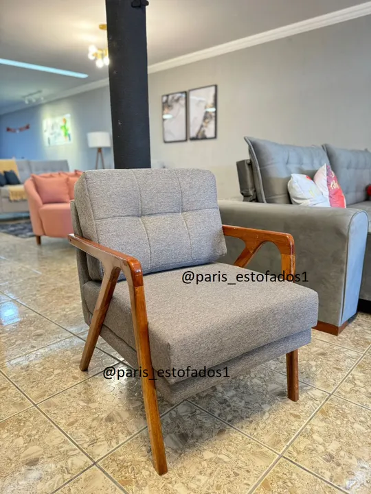 Poltrona Oprah: Madeira eucalipto, esponja D33 ortobom, almofada do encosto 100% na fibra, no tecido linho premium contendo 10 opções de cores.