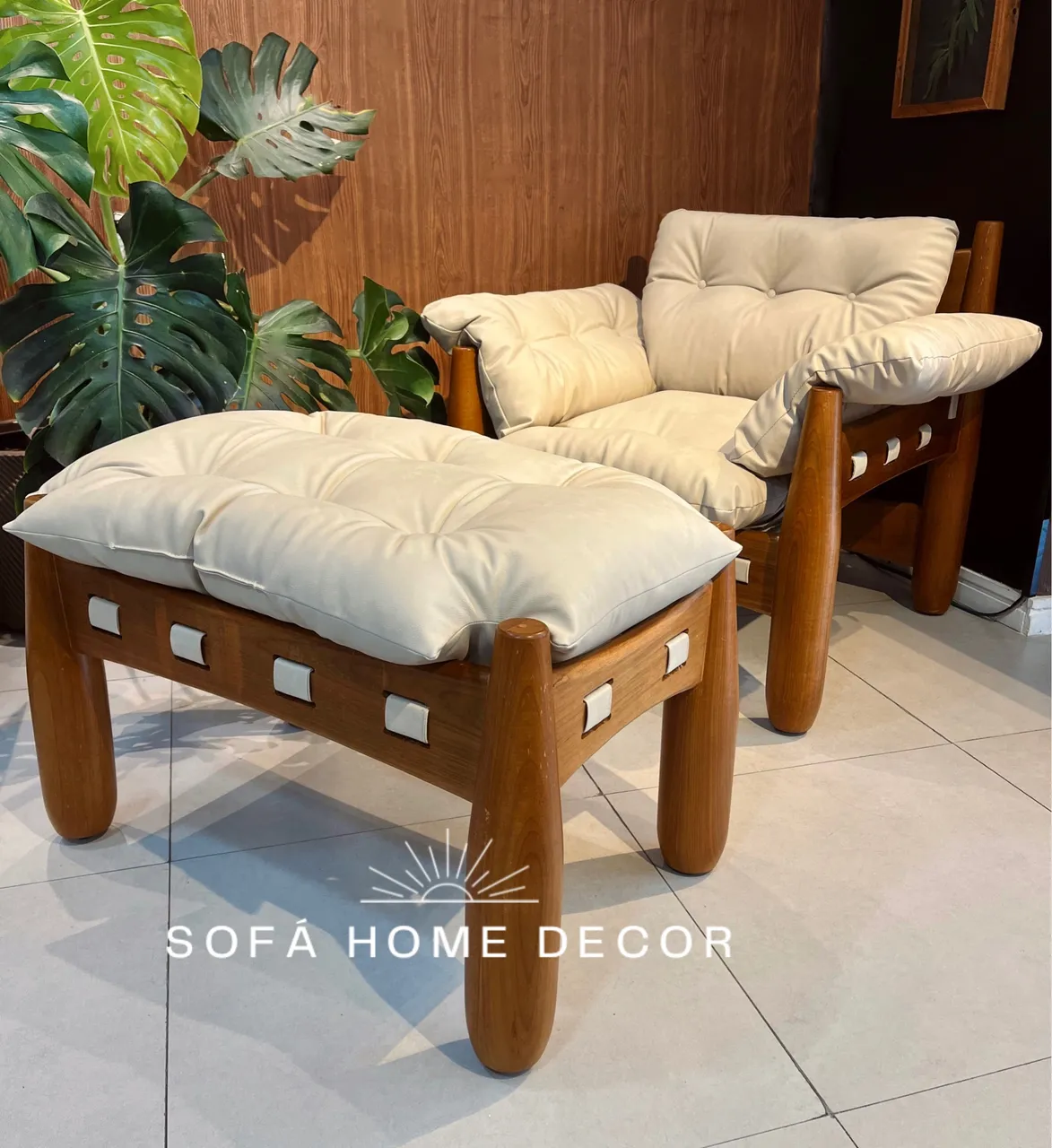 Conjunto elegante de poltrona e puff, ideal para relaxar com conforto e estilo. Design moderno e charmoso para sua sala.