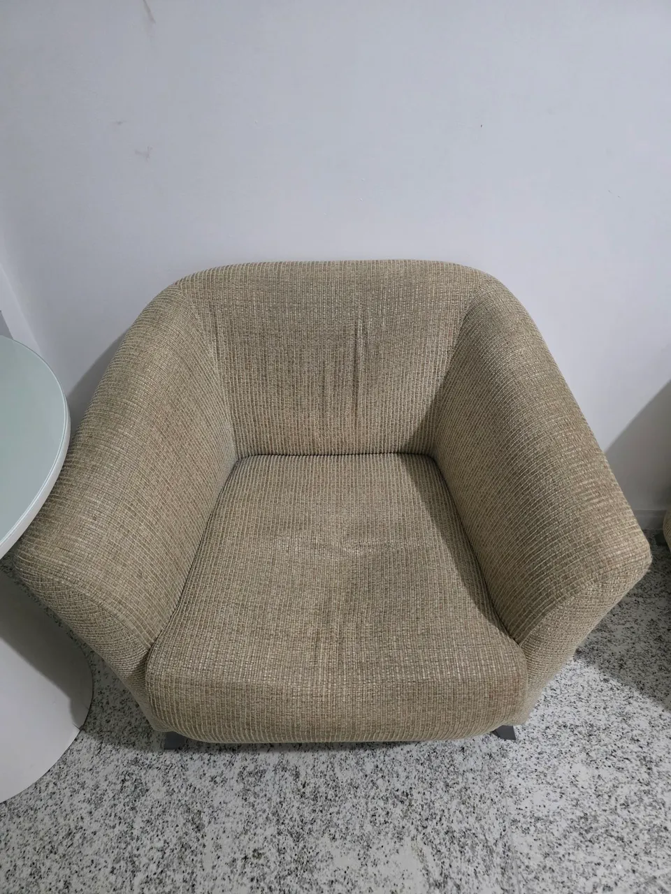 Poltronas em tecido, com pés em aço. R$ 350,00 cada.