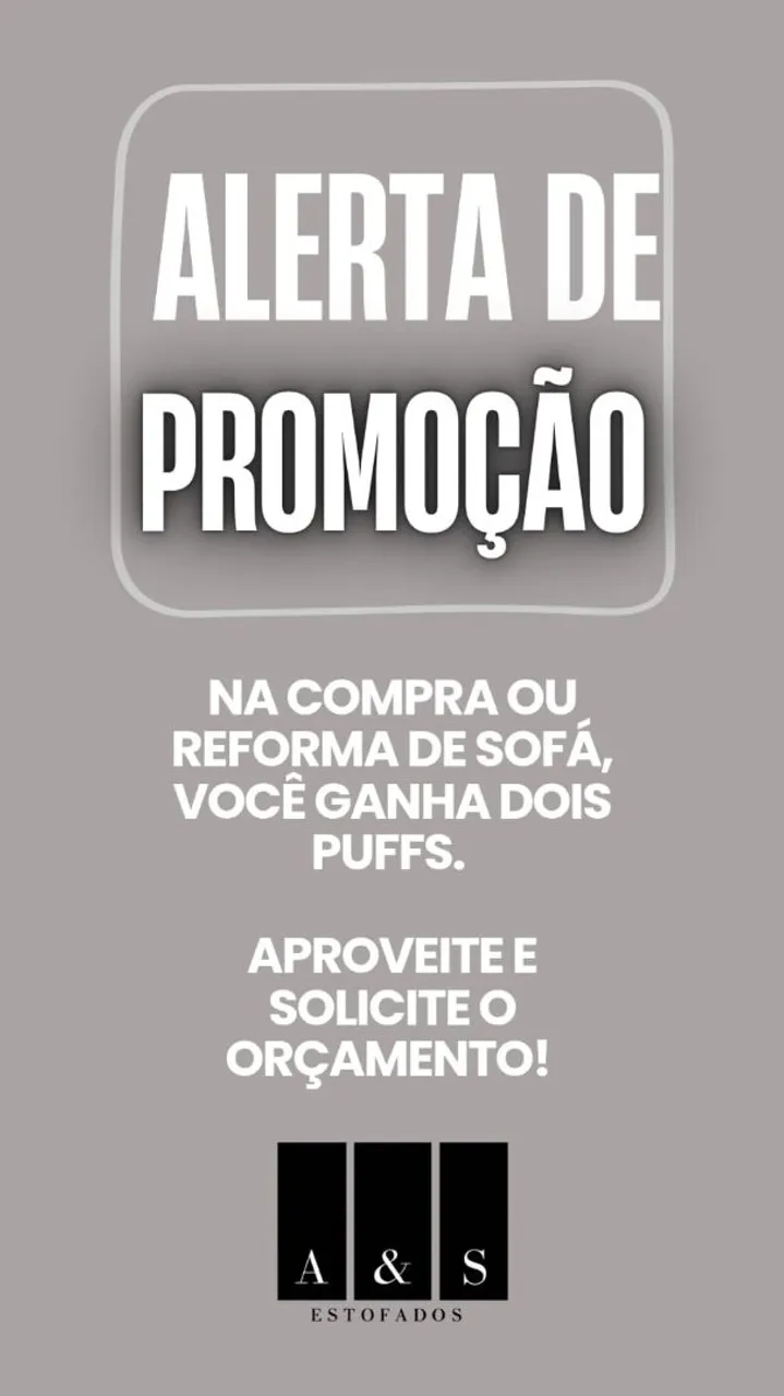 Renove seu ambiente com a reforma do seu sofá! Na compra ou reforma, ganhe dois puffs exclusivos. Aproveite esta oferta especial e solicite já seu orçamento.
