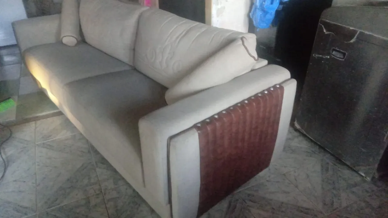 Sofá espaçoso de 4 lugares, perfeito para relaxar. Confeccionado com tecido Márcio, oferece conforto e estilo para sua sala.