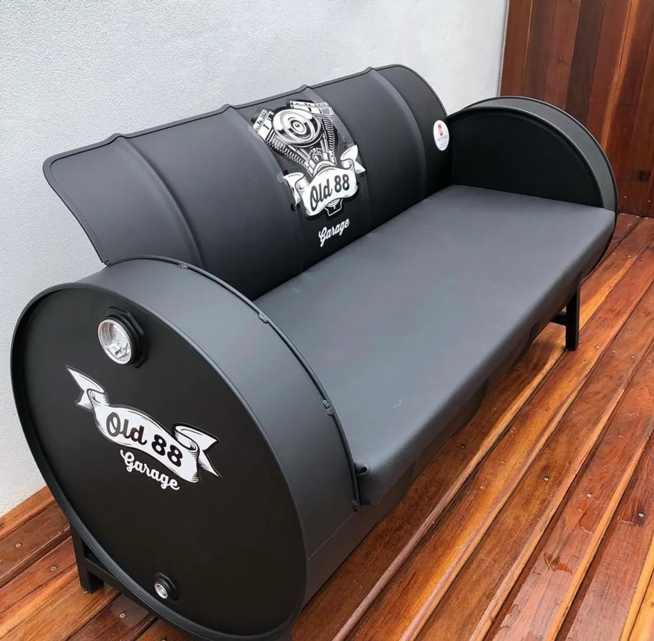 Sofá de tambor com design exclusivo para 4 pessoas, perfeito para quem busca estilo e personalidade na decoração. Conforto e originalidade em um único móvel!