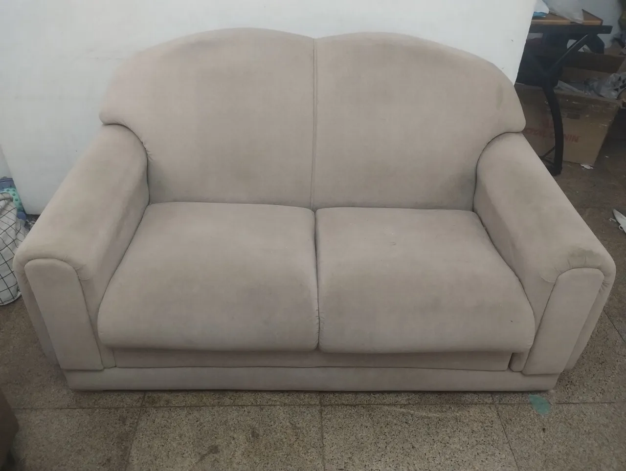 Sofá elegante de dois lugares, perfeito para adicionar conforto e estilo à sua sala. Design sofisticado e ideal para momentos de relaxamento.