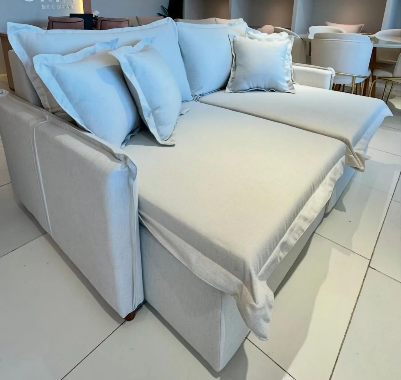 Sofá com 2.10 de largura total Com pillow top de espuma D28 Soft macia Tecido linho Super macio e confortável Restratil + almogafas decorativas de brinde