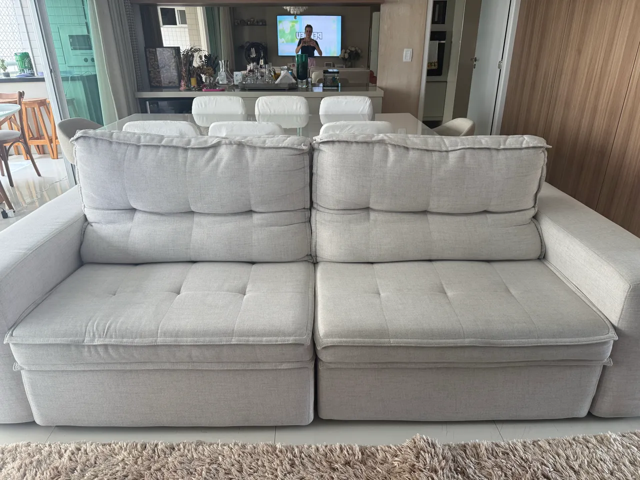 Apresentamos este sofá retrátil super novo, perfeito para transformar sua sala em um ambiente de conforto e sofisticação. Com design moderno e funcionalidade, este sofá é ideal para relaxar e receber convidados. Aproveite o conforto e a elegância que ele oferece! Pouco tempo de uso ! Da loja Jacauna. Vendo c a capa junto