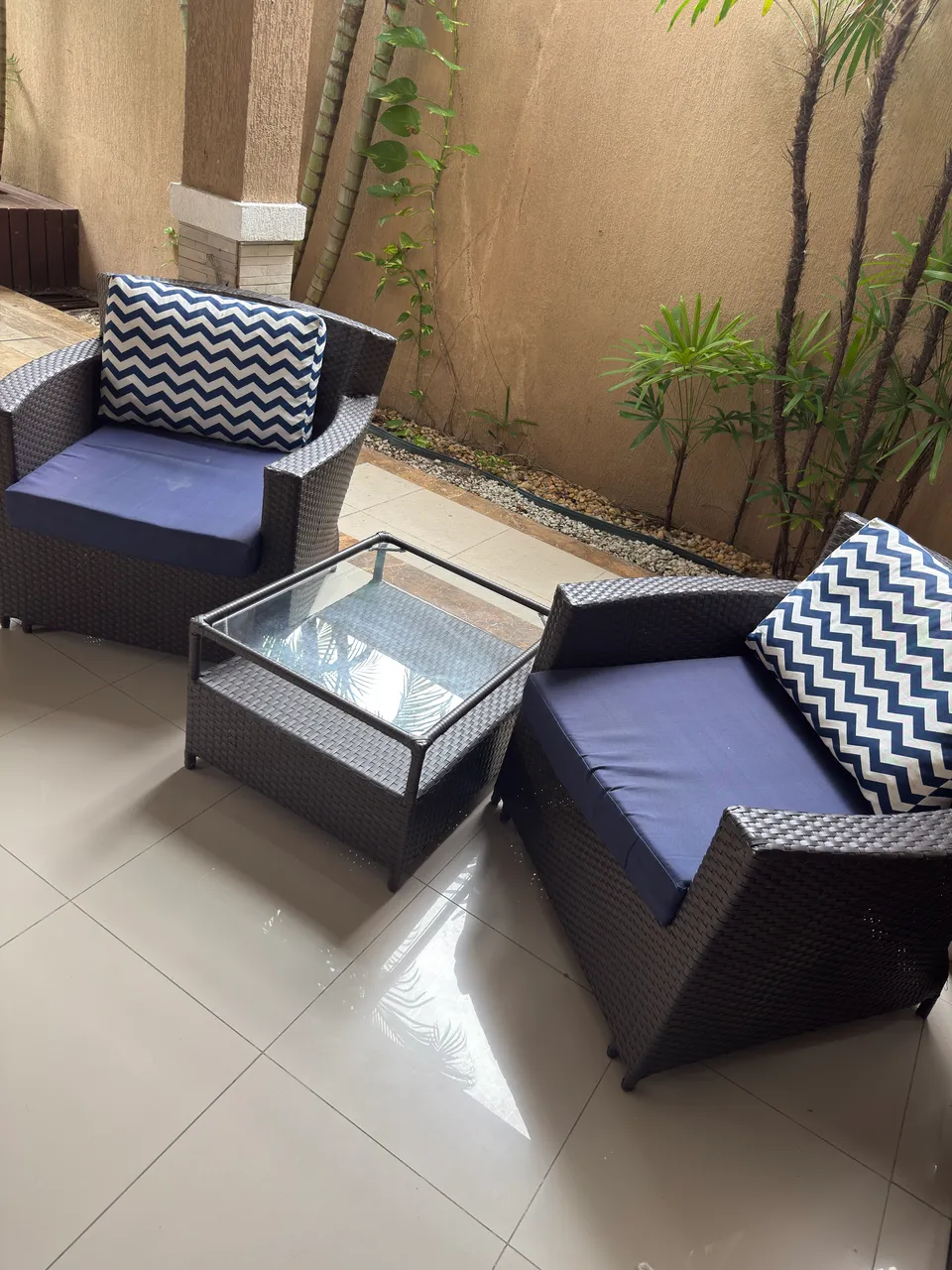 Transforme sua área externa em um refúgio de conforto e estilo com este elegante kit de sofás! Acompanha duas Poutrona uma mesa de centro e um sofá para 3 pessoas.Perfeito para relaxar, receber amigos ou simplesmente desfrutar do ar livre com sofisticação.