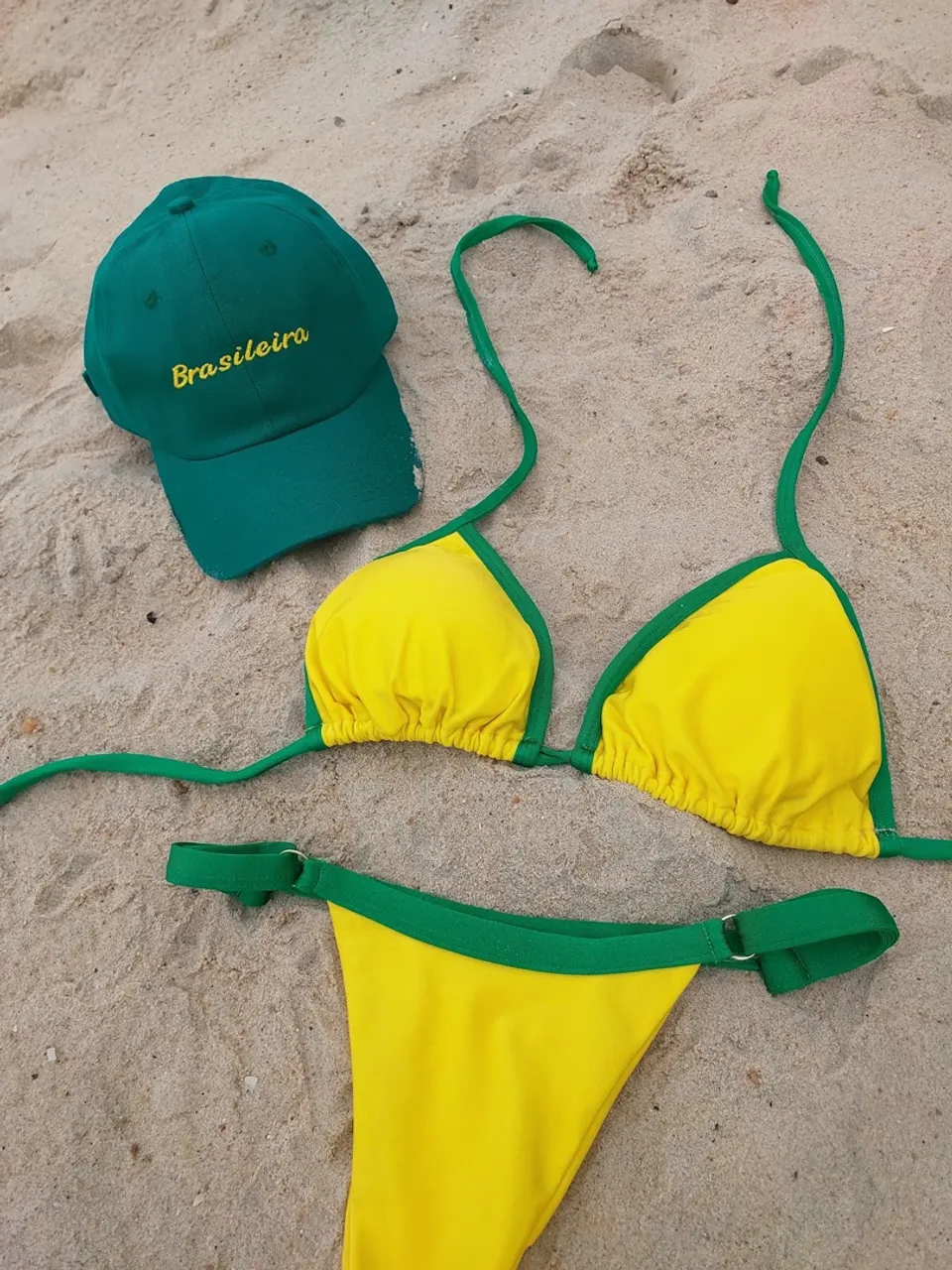 Prepare-se para o sol com este biquíni vibrante nas cores do Brasil! Perfeito para praia ou piscina, este conjunto é a cara do verão e promete te deixar ainda mais linda.