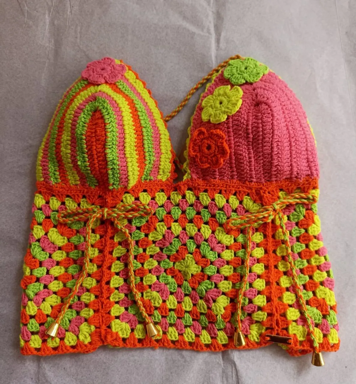 Linda blusa de crochê feita à mão, com cores vibrantes e design único. Perfeita para um visual estiloso e cheio de personalidade!