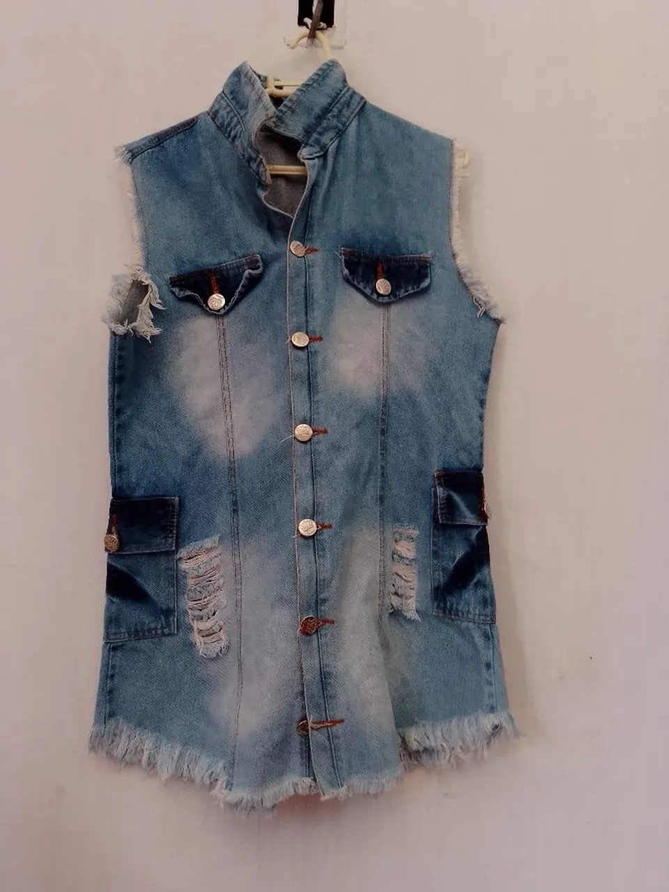 A jaqueta jeans perfeita para um visual moderno e estiloso! Design único com detalhes destroyed e acabamento desfiado. Ideal para compor looks incríveis em diversas ocasiões.