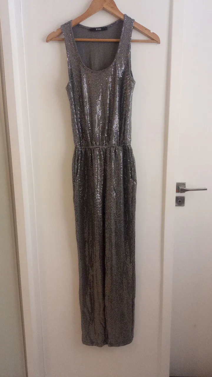 Macacão em lurex prateado, usado apenas 2 vezes. Tamanho P.