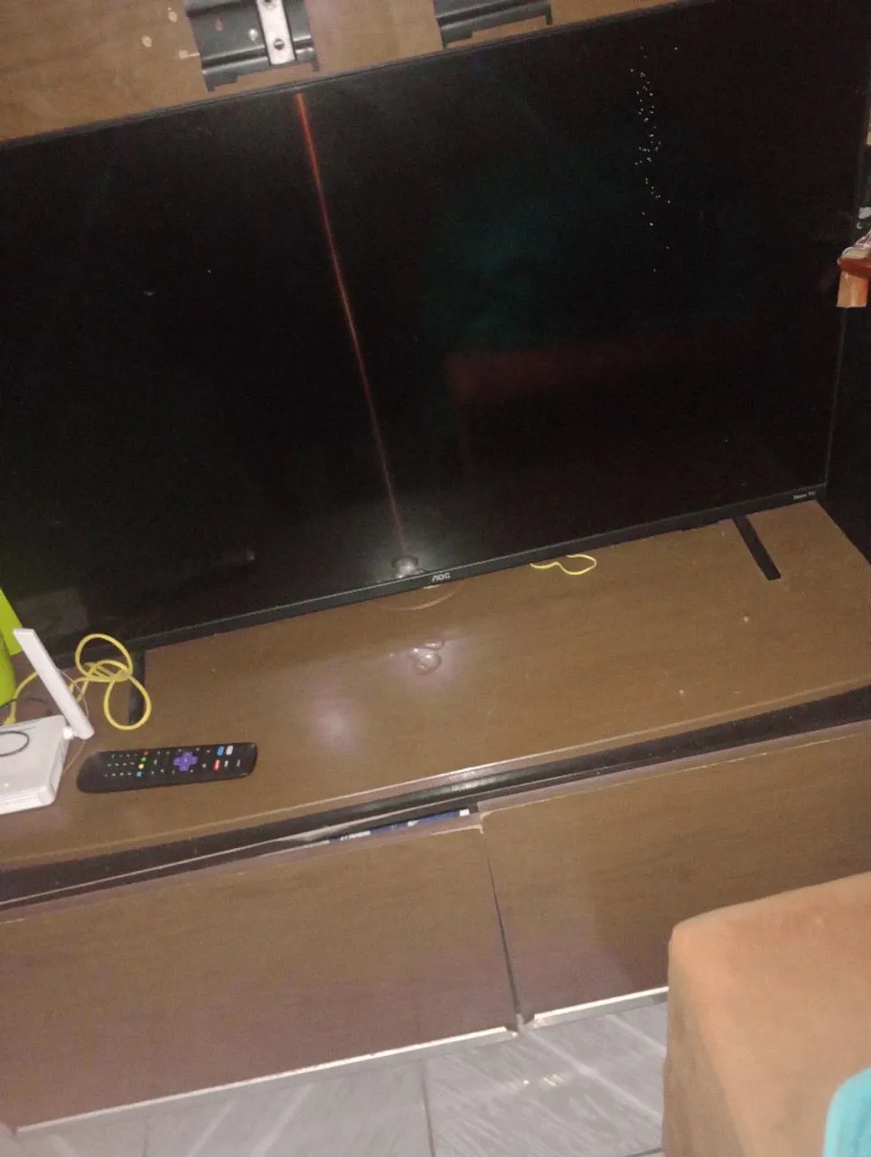 Smart TV AOC de 43 polegadas com tela quebrada. Ideal para quem busca peças ou conserto. Aproveite!