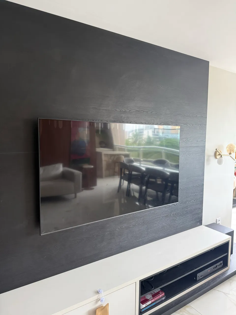 A TV está com a tela quebrada após impacto, porém todos os demais componentes estão funcionando perfeitamente,