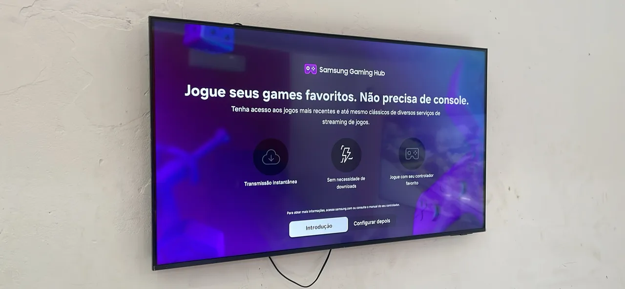 Desfrute de uma experiência de jogo imersiva com a Smart TV Samsung! Jogue seus games favoritos sem precisar de console, com acesso a jogos recentes e clássicos por streaming. Qualidade de imagem e som excepcionais para você!