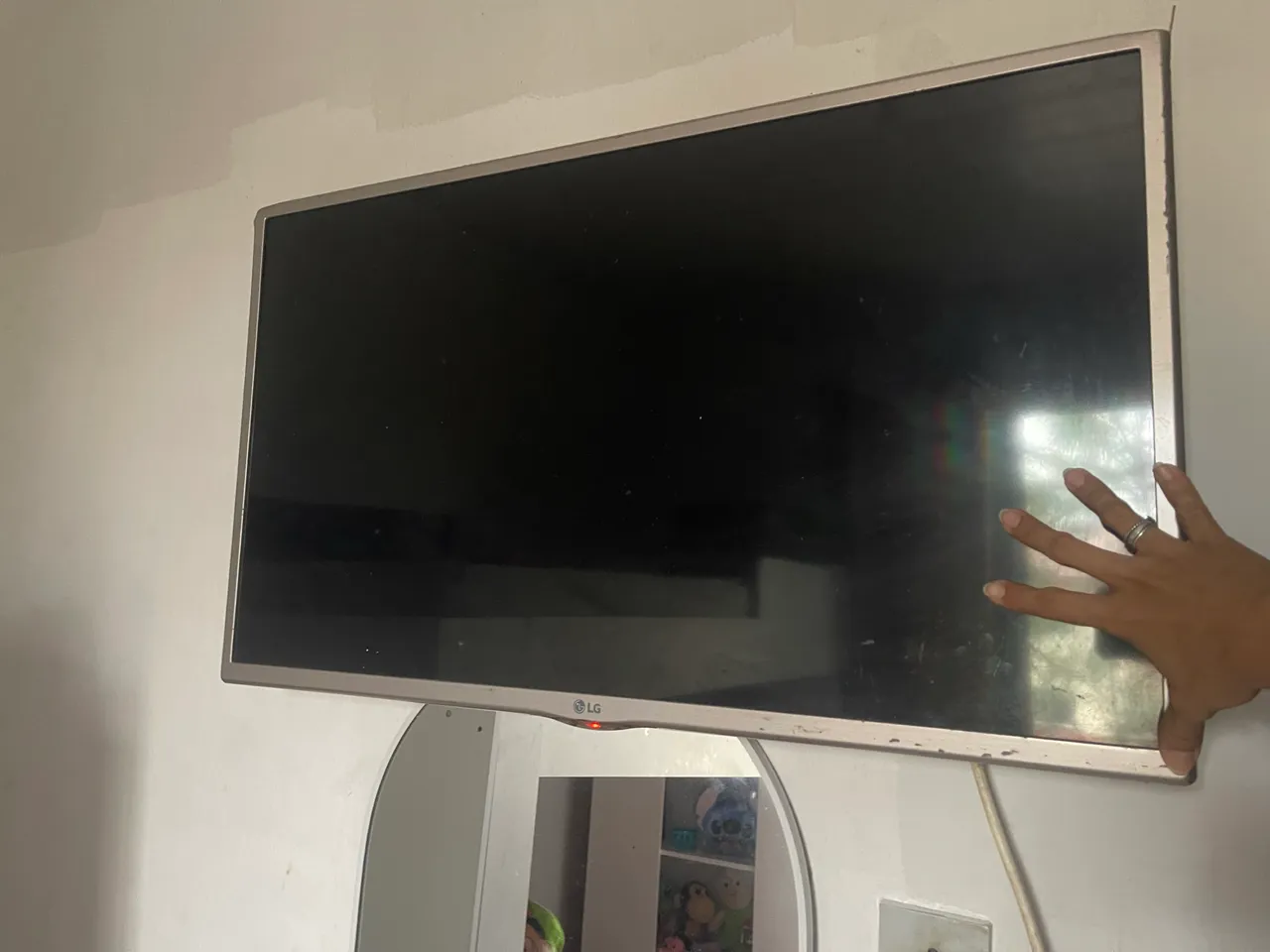 Tb funcionando com entrada USB hdmi ( não acompanha conversor digital nem controle remoto) uso pra quem quiser usar com cabos ou colocar um conversor digital , antena , etc.) tem esse defeito como segue na foto onde dá pra ver algumas iluminações feito círculo. Retirada José Walter