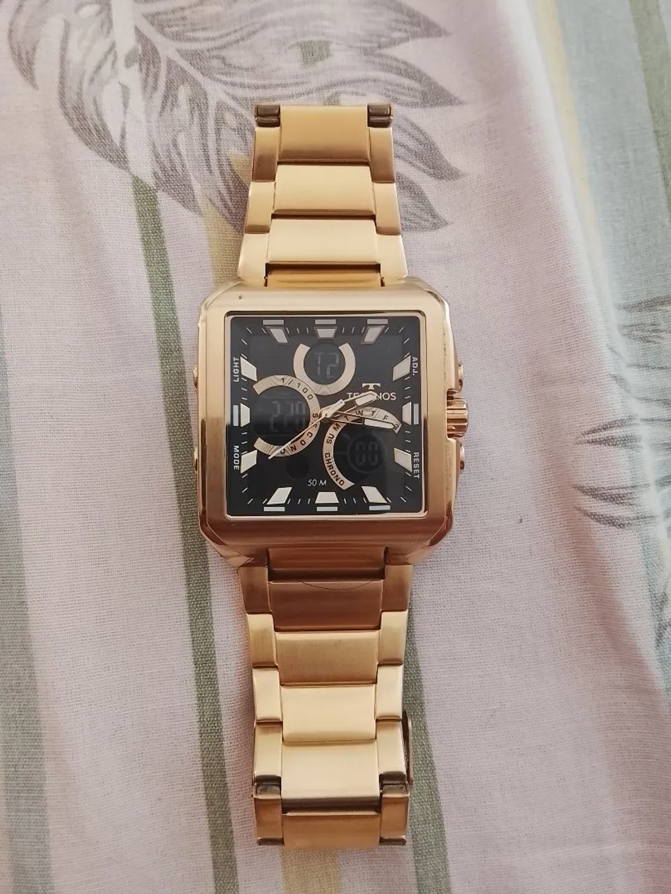 Relógio Technos 50m original, design elegante e moderno, perfeito para complementar seu estilo. Com pulseira e caixa douradas, este relógio é ideal para quem busca sofisticação e funcionalidade.